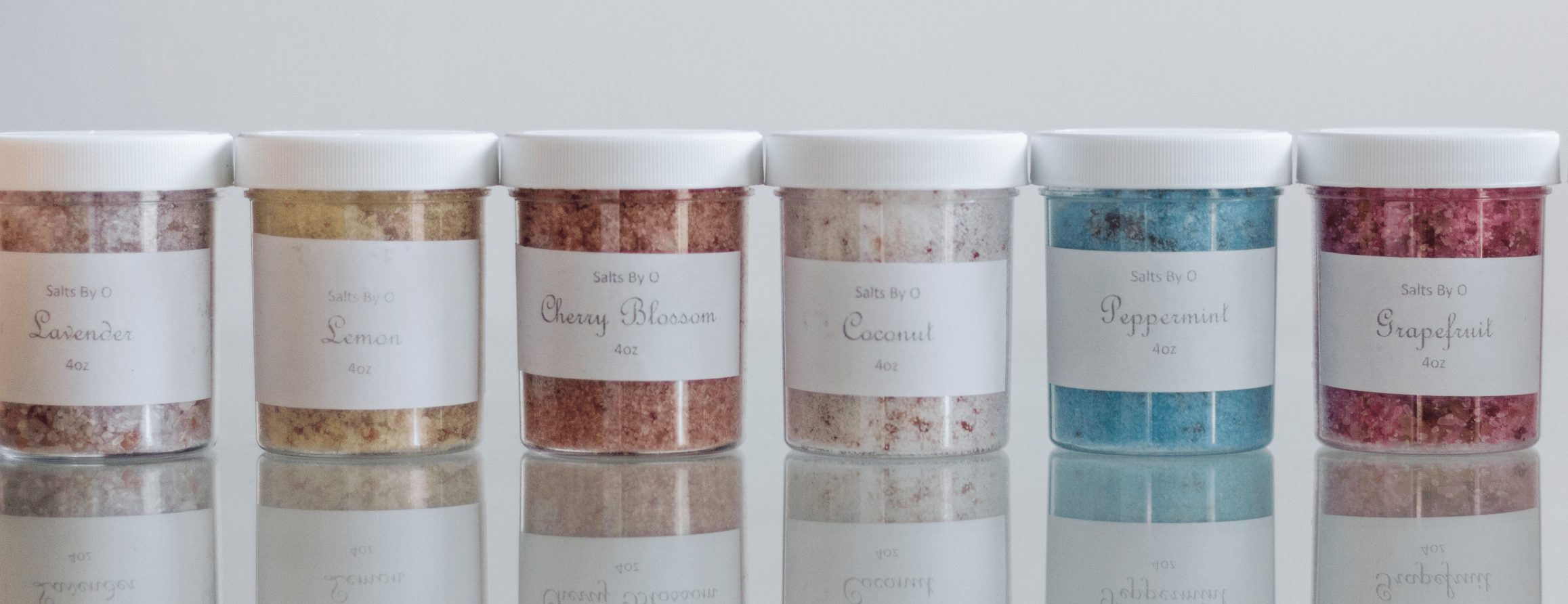 Ingredients: Epsom Salt, Pink Himalayan Salt, Essential Oils or Fragrance Oils, and Powdered Pigments.