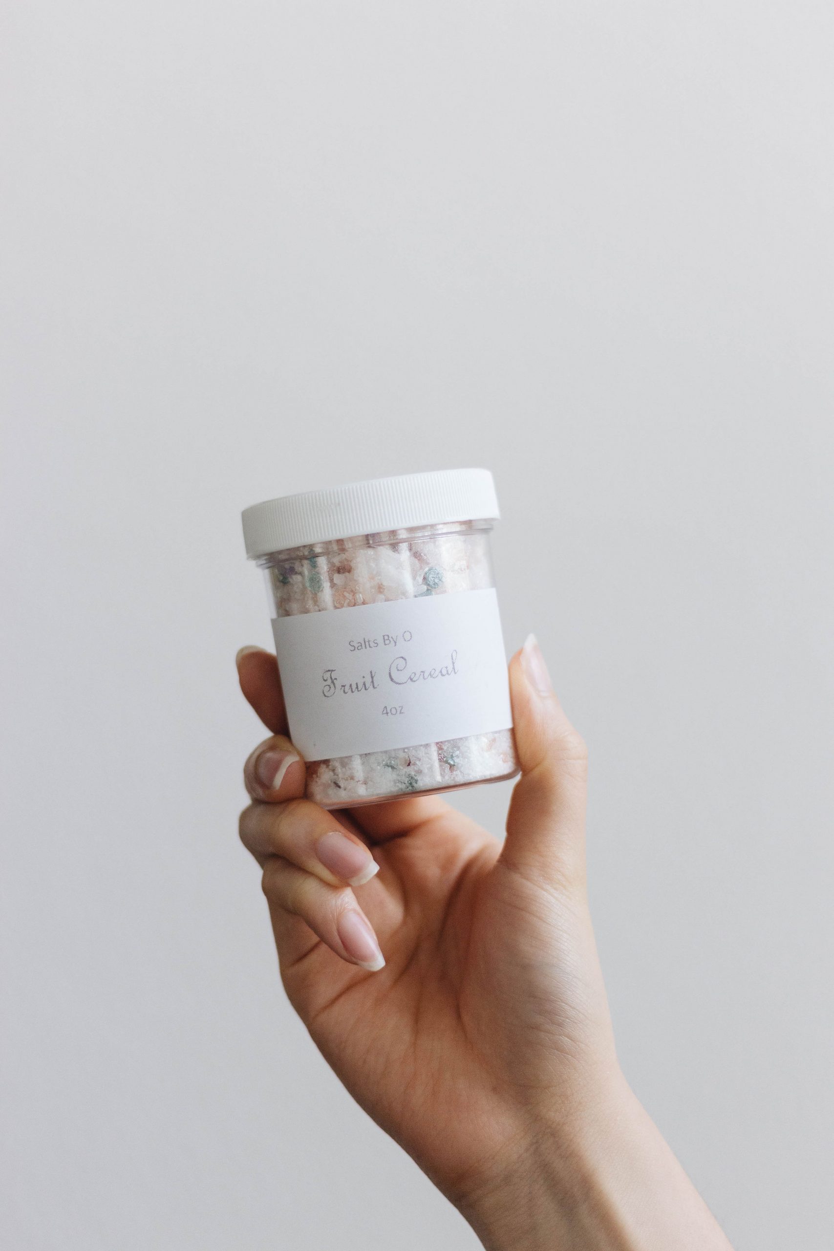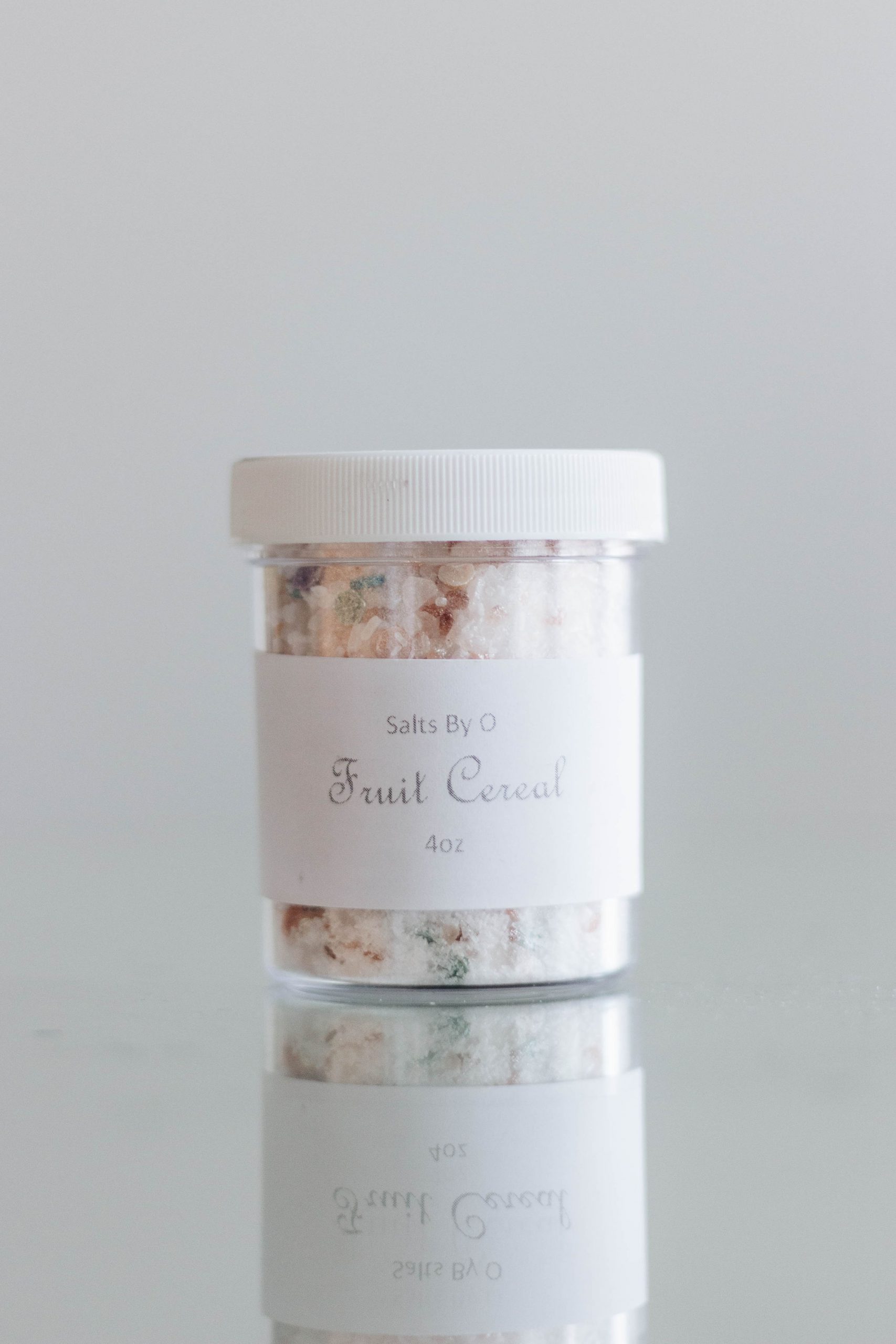 Ingredients: Epsom Salt, Pink Himalayan Sea Salt, Fruit Cereal Fragrance Oil, Splendid Classic White Powdered Pigments, and Soap Sprinkles.