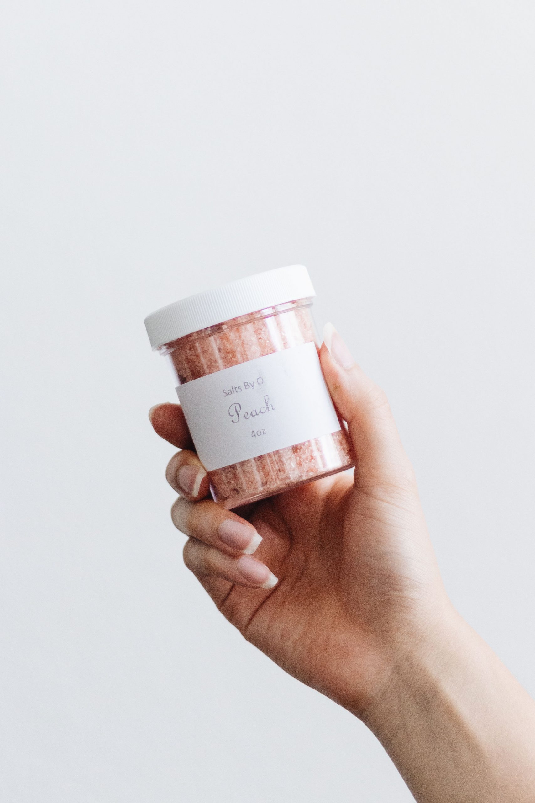 Ingredients: Epsom Salt, Pink Himalayan Sea Salt, Peach Fragrance Oil, and Deep Coral and Vintage Hot Pink Pigments.
