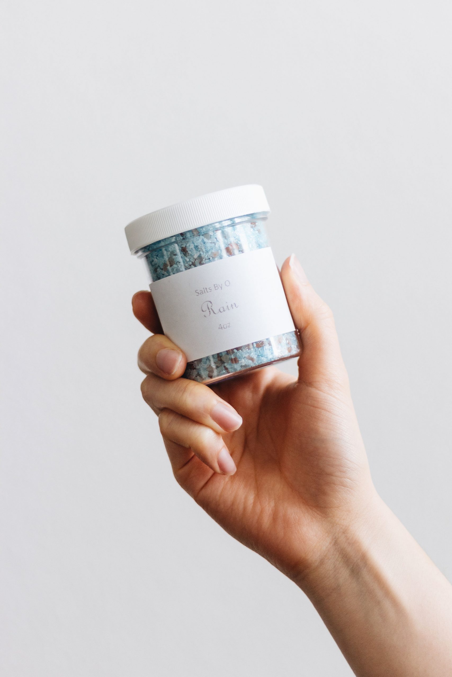 Ingredients: Epsom Salt, Pink Himalayan Sea Salt, Rain Fragrance Oil, and Classic Blue Powdered Pigments.