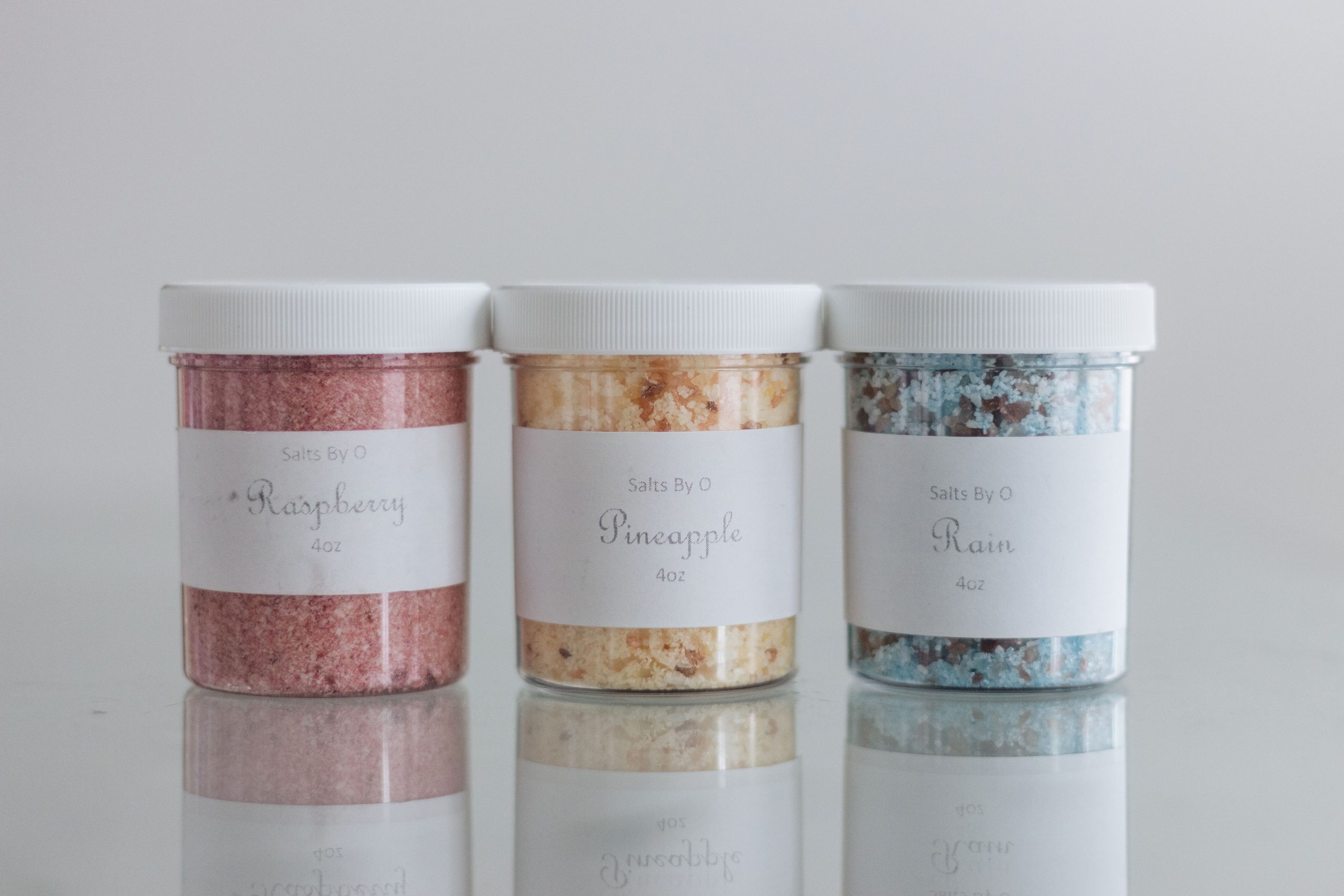 A bundle consisting of 3 of our products. Products include our Raspberry Bath Salt Soak, Pineapple Bath Salt Soak, and Rain Bath Salt Soak.