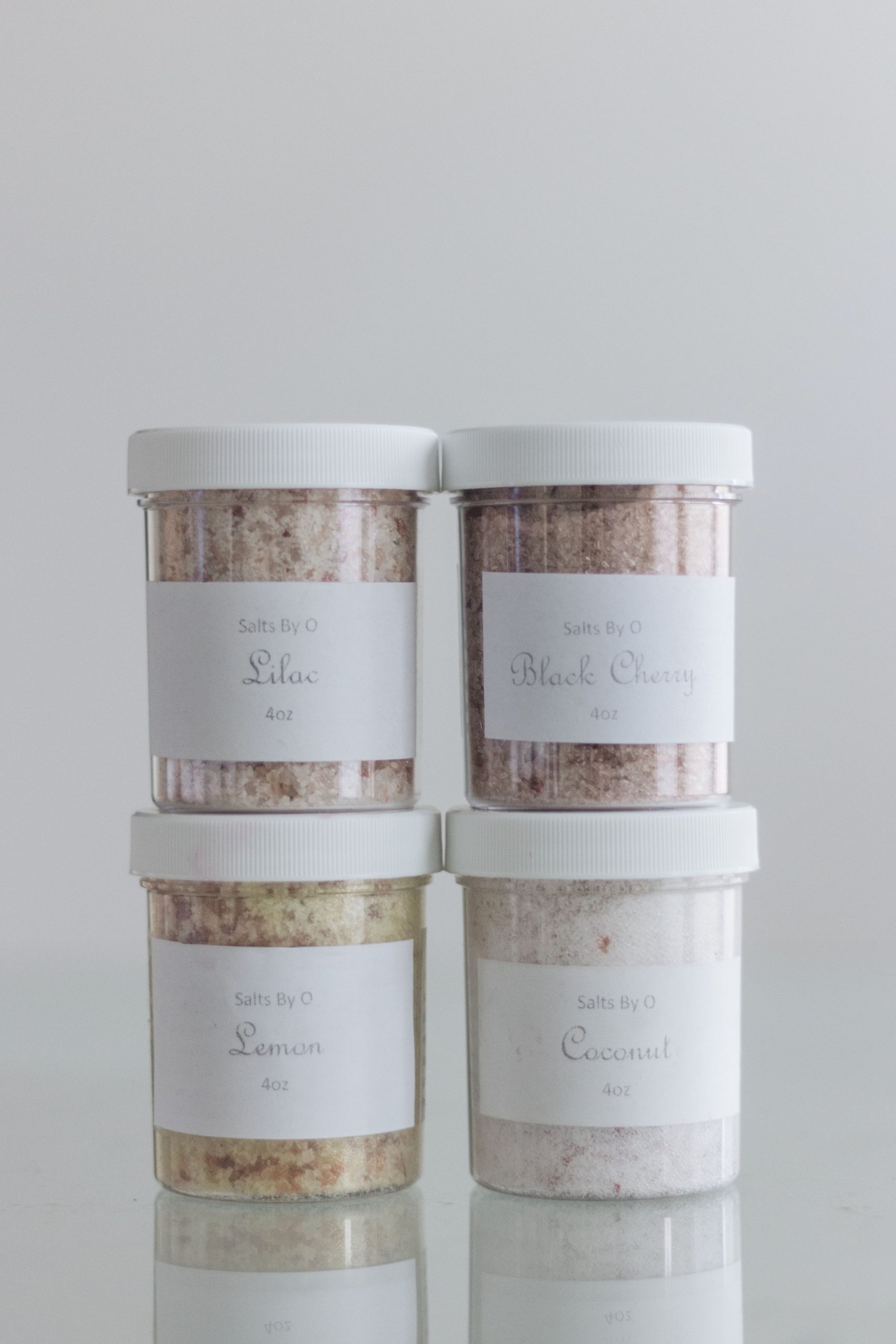 A bundle consisting of 4 of our products. Products include our Lilac Bath Salt Soak, Black Cherry Bath Salt Soak, Lemon Bath Salt Soak, and Coconut Bath Salt Soak.