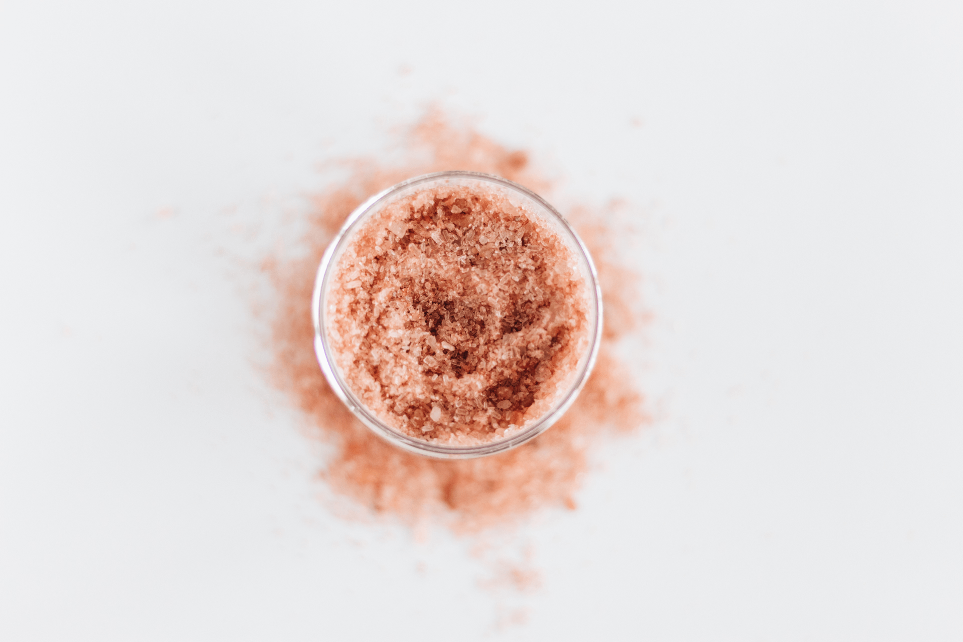 A jar of our bath salt soak formula with the scent of rose, colored a shimmering red.